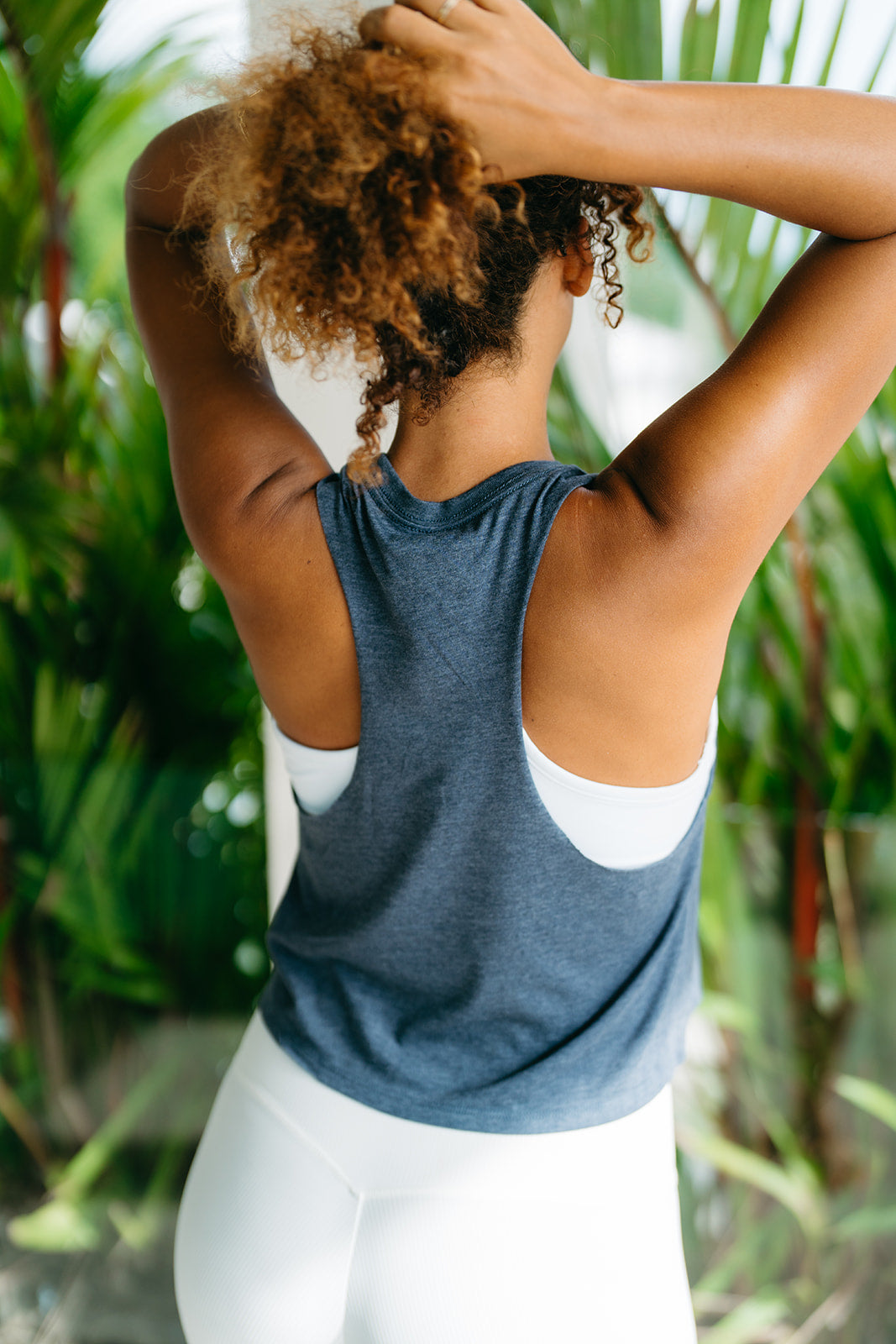 our eco friendly basic muscle racerback crop tee in jersey cotton.