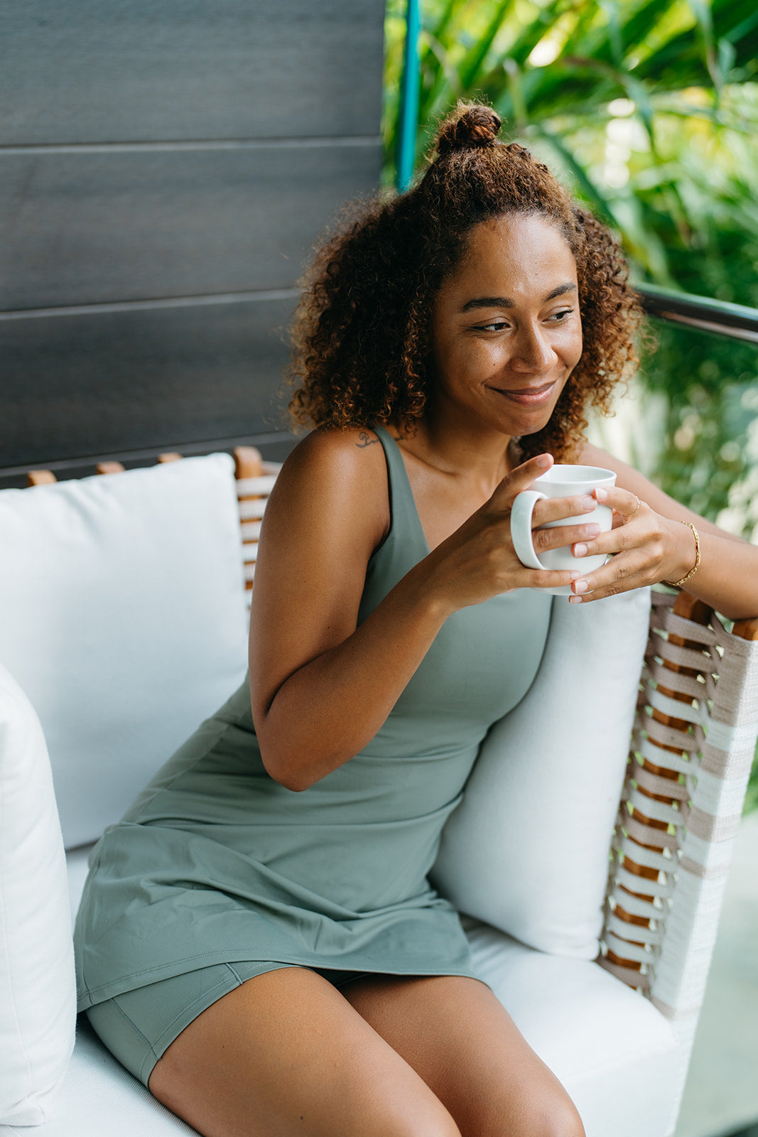 key features :: scoop neck front + back, compression shorts (with pockets!) underneath the dress, built-in sports bra