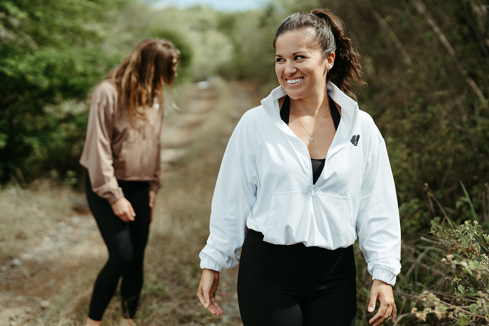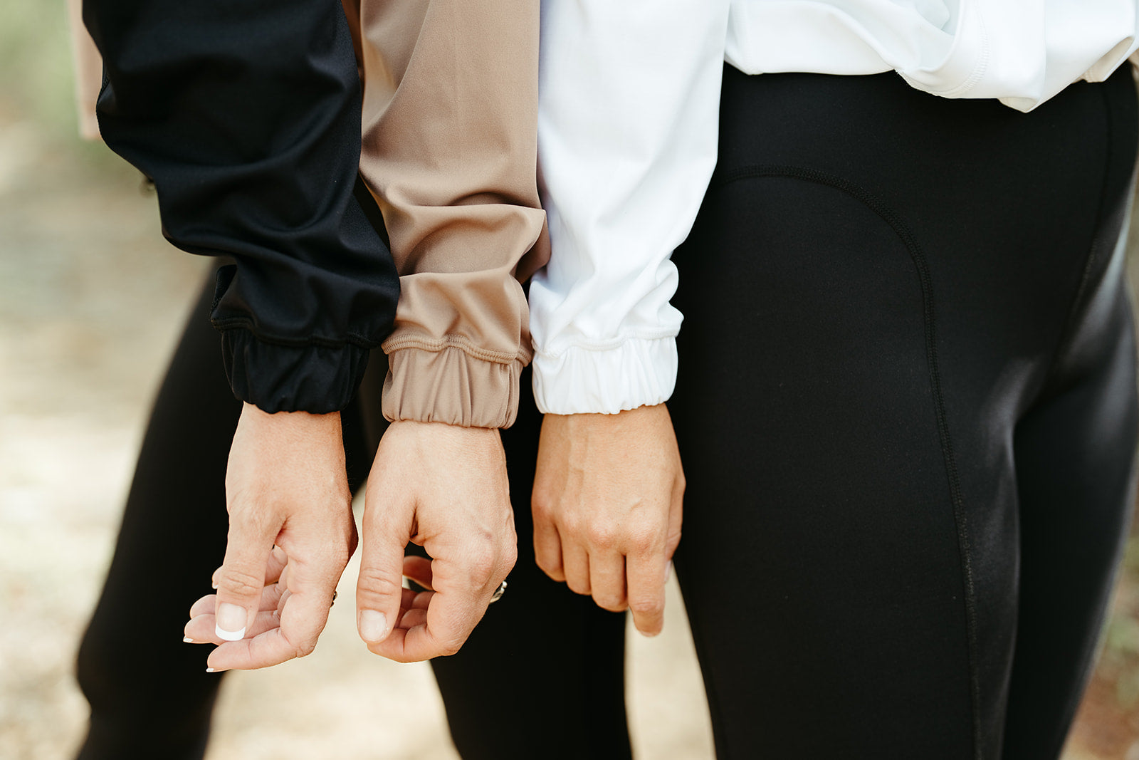 made with our heavier spandex/nylon mix which makes it a great wind proof jacket which we need in those transition months. keeps us us from getting "cool" during our morning runs/walks/hikes.